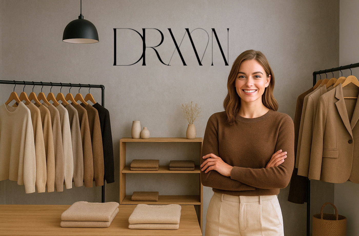 Avec peu d’argent mais une détermination sans limites, elle loua une petite boutique dans une rue calme. Elle peignit les murs elle-même, choisissant des tons terreux parce qu’elle estimait que la mode devait apporter chaleur et sérénité, et installa le logo DRXVN — épuré et moderne — au mur. Peu à peu, sa boutique se remplit de pièces qui respiraient sa personnalité : minimalistes, élégantes, avec toujours une touche audacieuse.